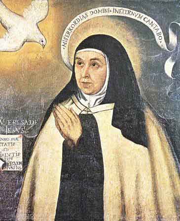 Teresa de Ahumada nasceu no dia 28 de Março de 1515. De entre os seus 11 irmãos, Teresa evidenciou ser a mais inteligente e agradável no trato. Desde criança se imprimiu no seu espírito um forte desejo do Céu e da eternidade. Esse seu grande "desejo de ver a Deus" levou Teresa a empreender uma fuga com seu irmão para a terra dos mouros, procurando o martírio, com apenas 7 anos de idade. Aos 13 anos perdeu a sua mãe, e foi então junto de uma imagem de Nossa Senhora, na sua igreja paroquial, pedir-lhe que a substituísse. Ao entrar na adolescência e juventude, Teresa deixa-se influenciar pela companhia de seus primos, e perde-se em futilidades e vaidades próprias da idade, inspiradas pelos romances de cavalaria que gostava de ler. O seu pai resolveu interná-la no Colégio das Irmãs de Nossa Senhora da Graça. Uma jovem freira da comunidade, de quem Teresa se tornou amiga, foi a sua educadora e ajudou-a a redescobrir os grandes valores humanos e cristãos. Começou então a pensar na possibilidade de vir a ser também ela religiosa, e decidiu entrar no convento de Nossa Senhora da Encarnação, das Carmelitas, onde já se encontrava uma das suas amigas, Joana Suarez. O seu pai não estava de acordo, mas Teresa, com 20 anos, fugiu e ingressou neste convento de clausura, embora lhe custasse muito separar-se da casa paterna. Depois da Profissão Religiosa, foi atingida por uma estranha e grave doença que a levou às portas da morte, ao ponto de se ter preparado a sepultura no cemitério do convento. O seu pai não desiste e acredita na recuperação da filha, encomenda-a a S. José e, passados quatro dias, Teresa sai de um coma profundo. Desde então, tornou-se grande devota de S. José, devoção que depois legou a todo o Carmelo reformado. |
